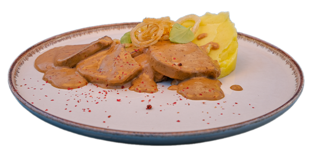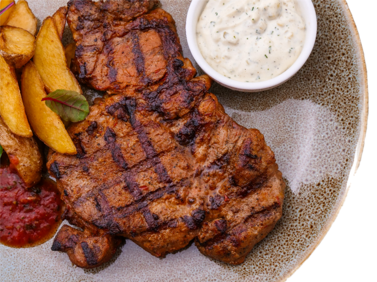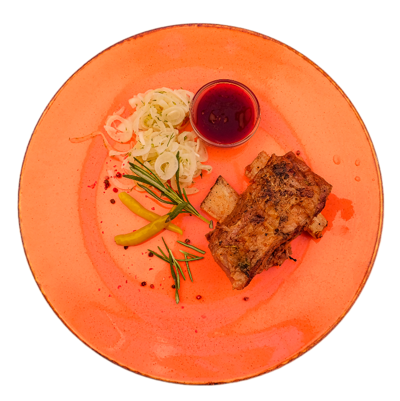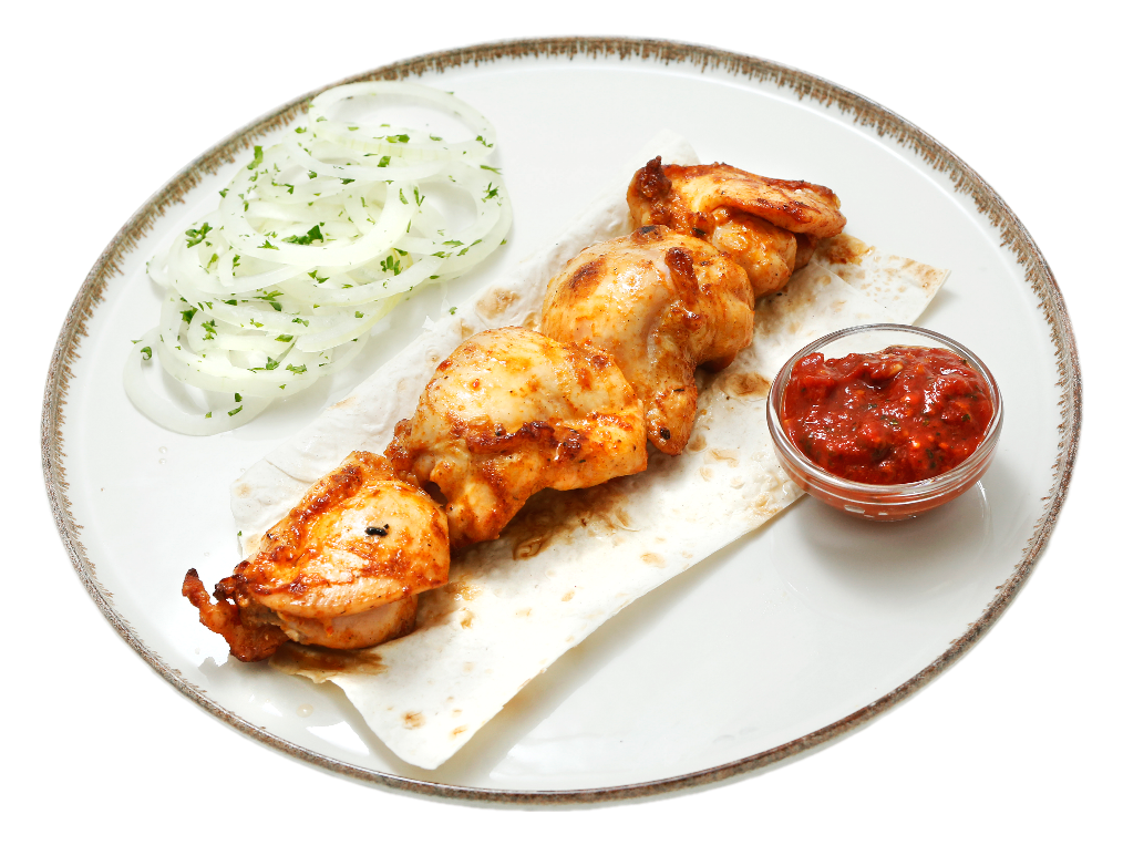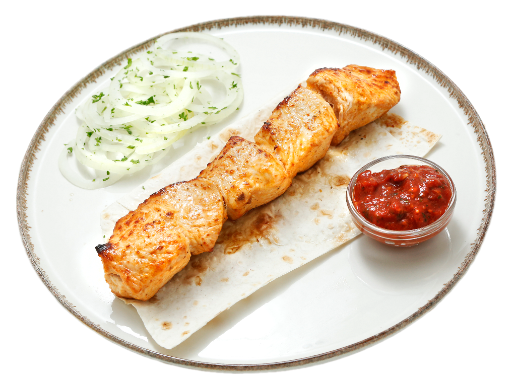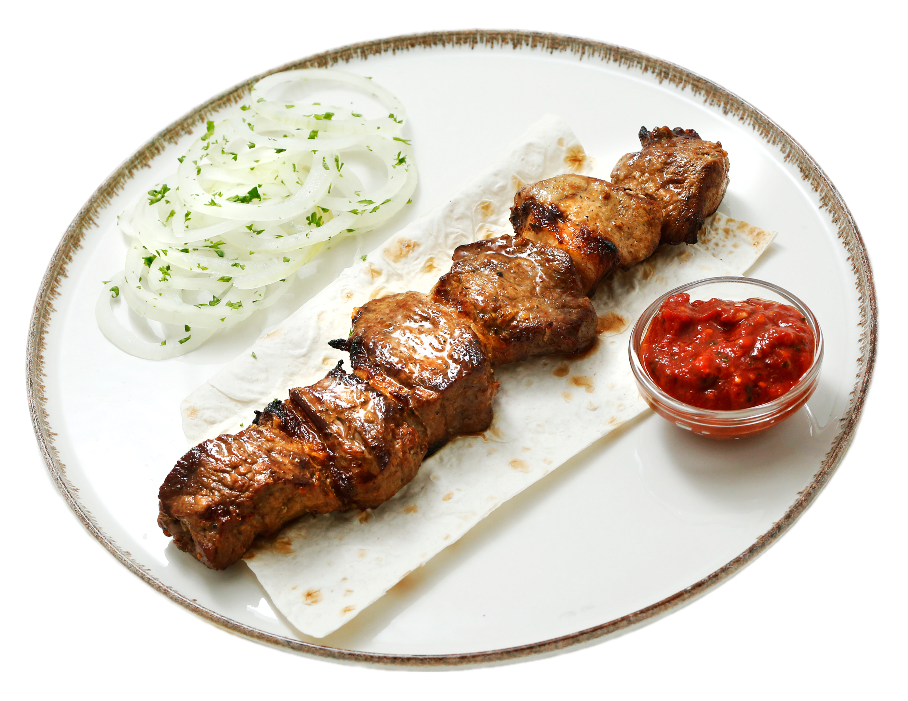 Традиционный шашлык из отборной свинины, с насыщенным вкусом и ароматом жареного мяса.