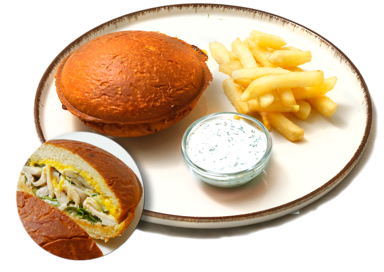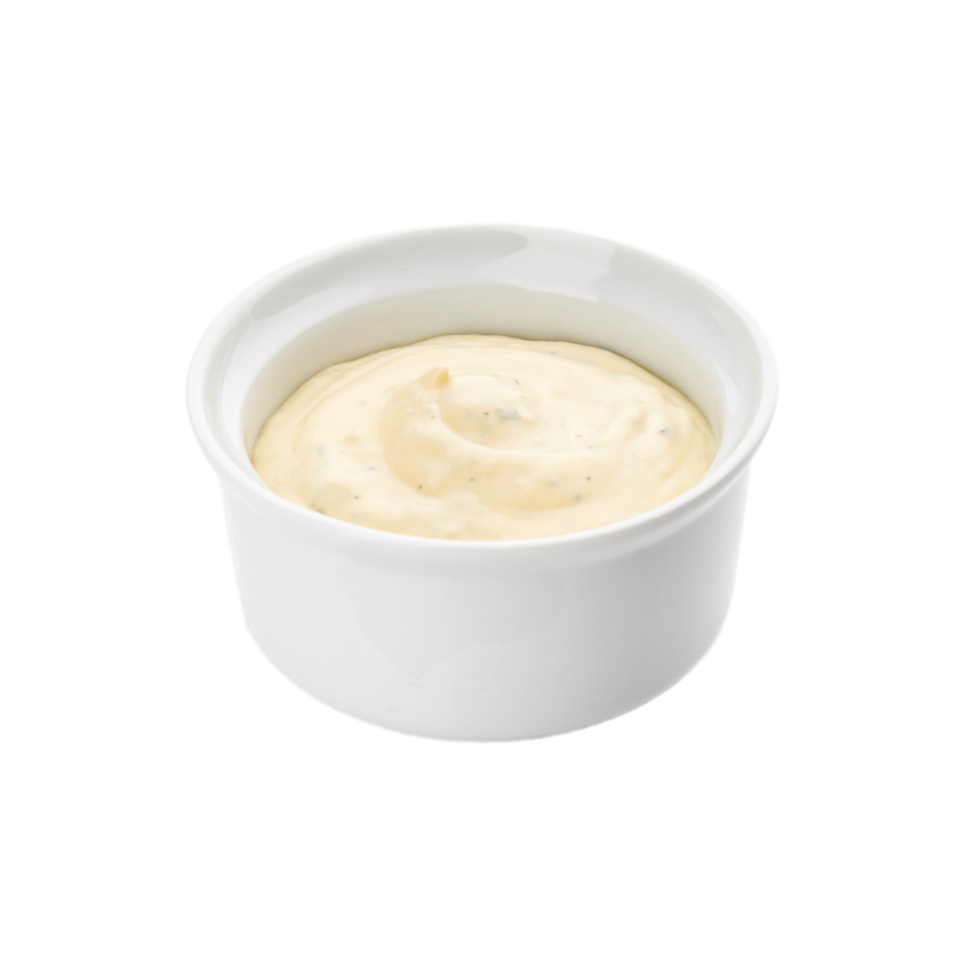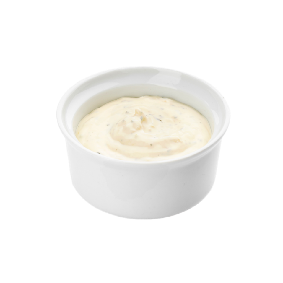 Хрустящие гренки из ароматного хлеба с чесноком, подаются с нежным соусом тартар.