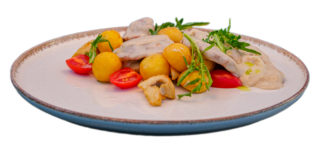 Целые шампиньоны, пропитанные дымом и специями, жареные до румяной корочки.